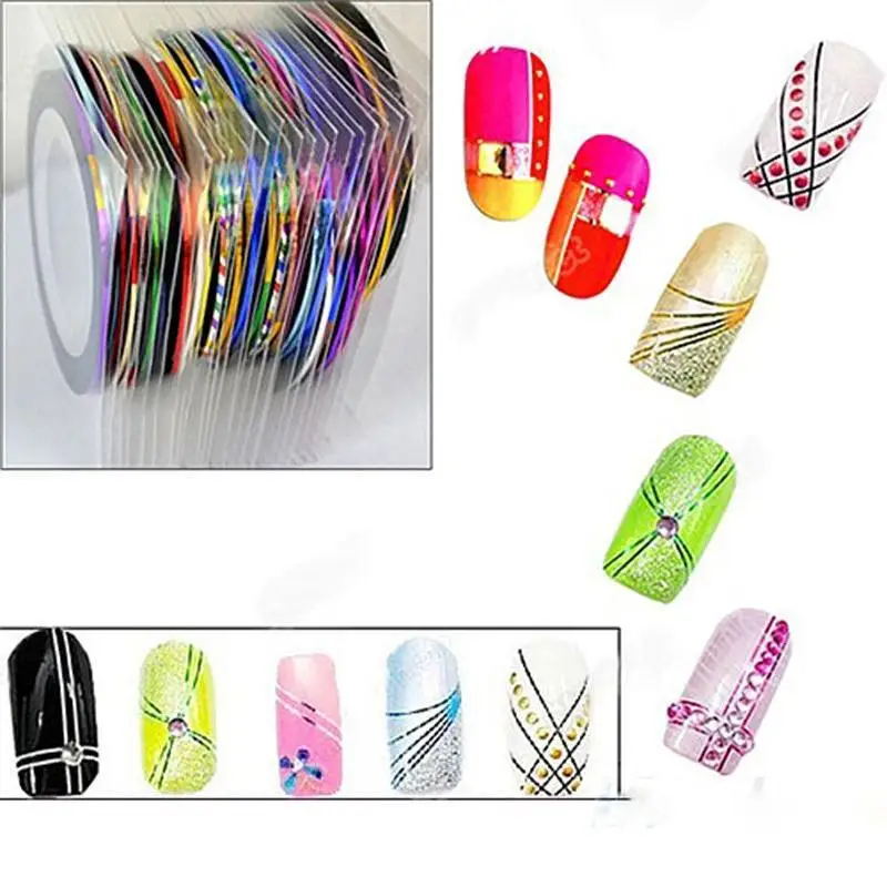 أرغب في شراءمعلومات اضافية BearPaw لفات خط مسمار الفن شريطية أشرطة ملصقا 1 ملليمتر لاصق متعدد اللون DIY مانيكير مسمار الفن التصميم أدوات نصائح الشارات
