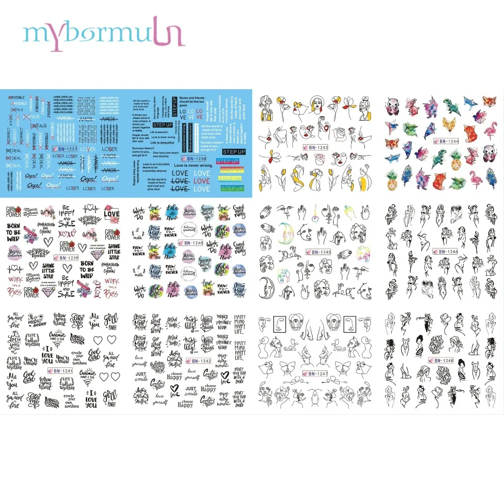شراءمعلومات اضافية 12 نوع مسمار المياه ملصق الأسود Coloful مجردة صورة يمكنك نقل المياه مسمار ملصق الديكور مانيكير نمط أداة BN1237-1248