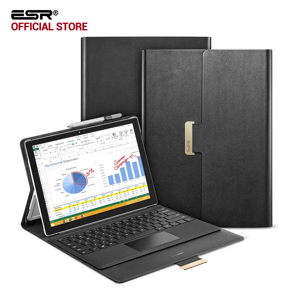 المنتجات ذات الصلة ل Styling و حالة لسطح برو 2017/برو 4 2015 ، ESR نمط الأعمال بو الجلود حامل مدمج مع زوايا عرض متعددة فوليو حامل حالة