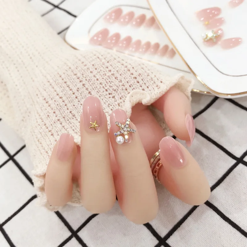 المنتجات ذات الصلة ل Styling و الصحافة موضة الأظافر نمط الاصطناعي وهمية أظافر صناعية نصائح نجوم تصميم 24 قطعة غطاء كامل الاكريليك مسمار مع شريط لاصق #